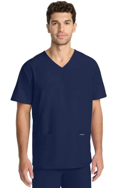 - Design Profesional: Decolteu in V (V-neck) clasic si doua buzunare frontale mari pentru organizare eficienta.