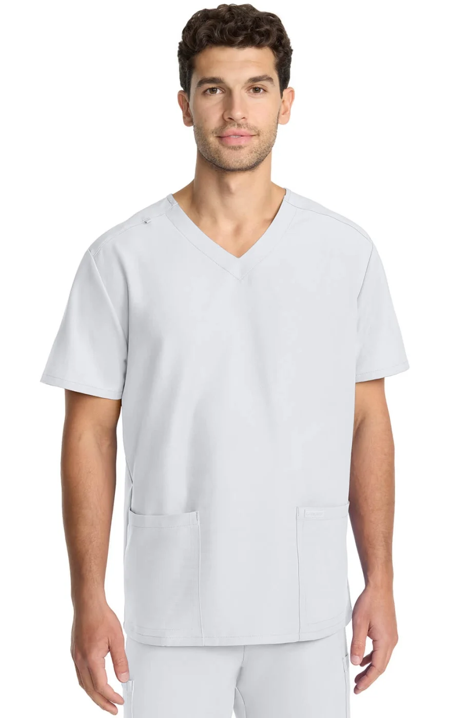 • Design Profesional: Decolteu in V (V-neck) clasic si doua buzunare frontale mari pentru organizare eficienta.