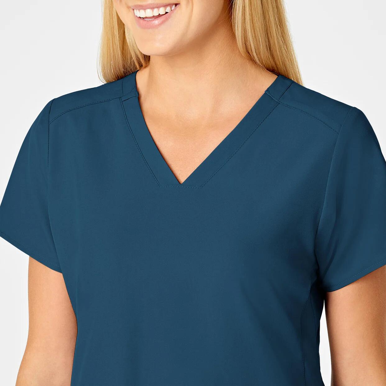 Confort care te insoteste in cele mai intense ture. Aceasta bluza medicala imbina designul modern cu functionalitatea, oferind decolteu in V elegant, material elastic in 4 directii pentru mobilitate deplina.
