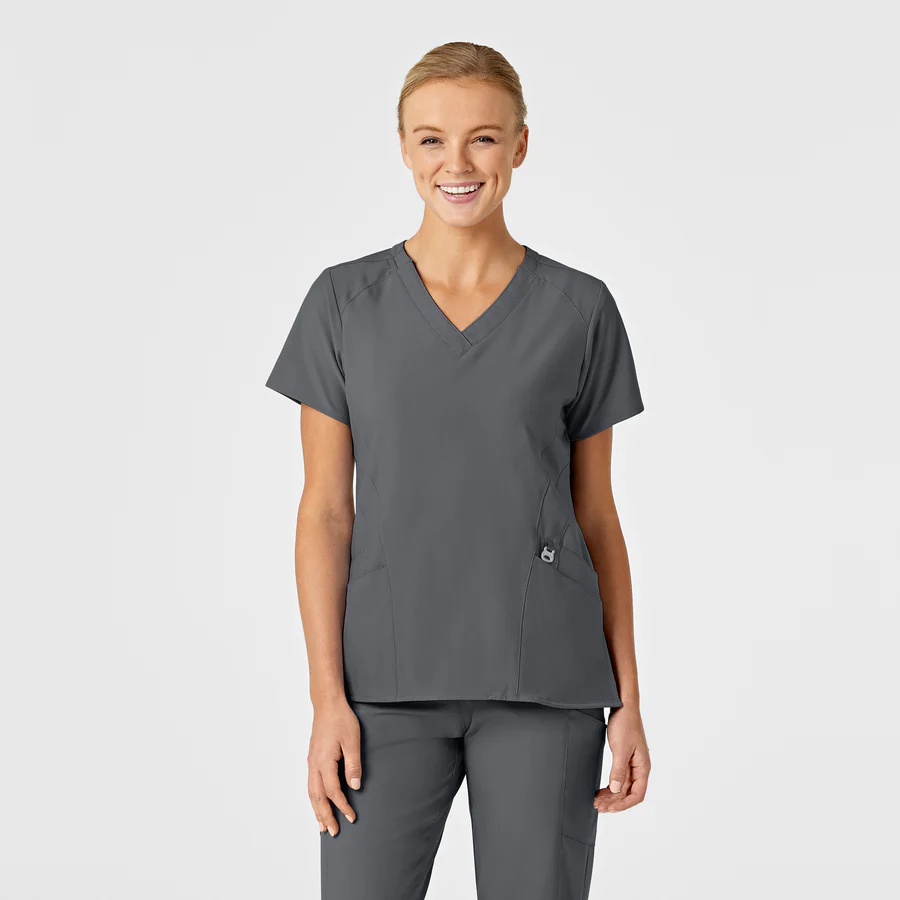 Bluza medicala moderna si functionala, cu croiala semi-fit si decolteu in V stilizat, ideala pentru confort in timpul orelor solicitante.