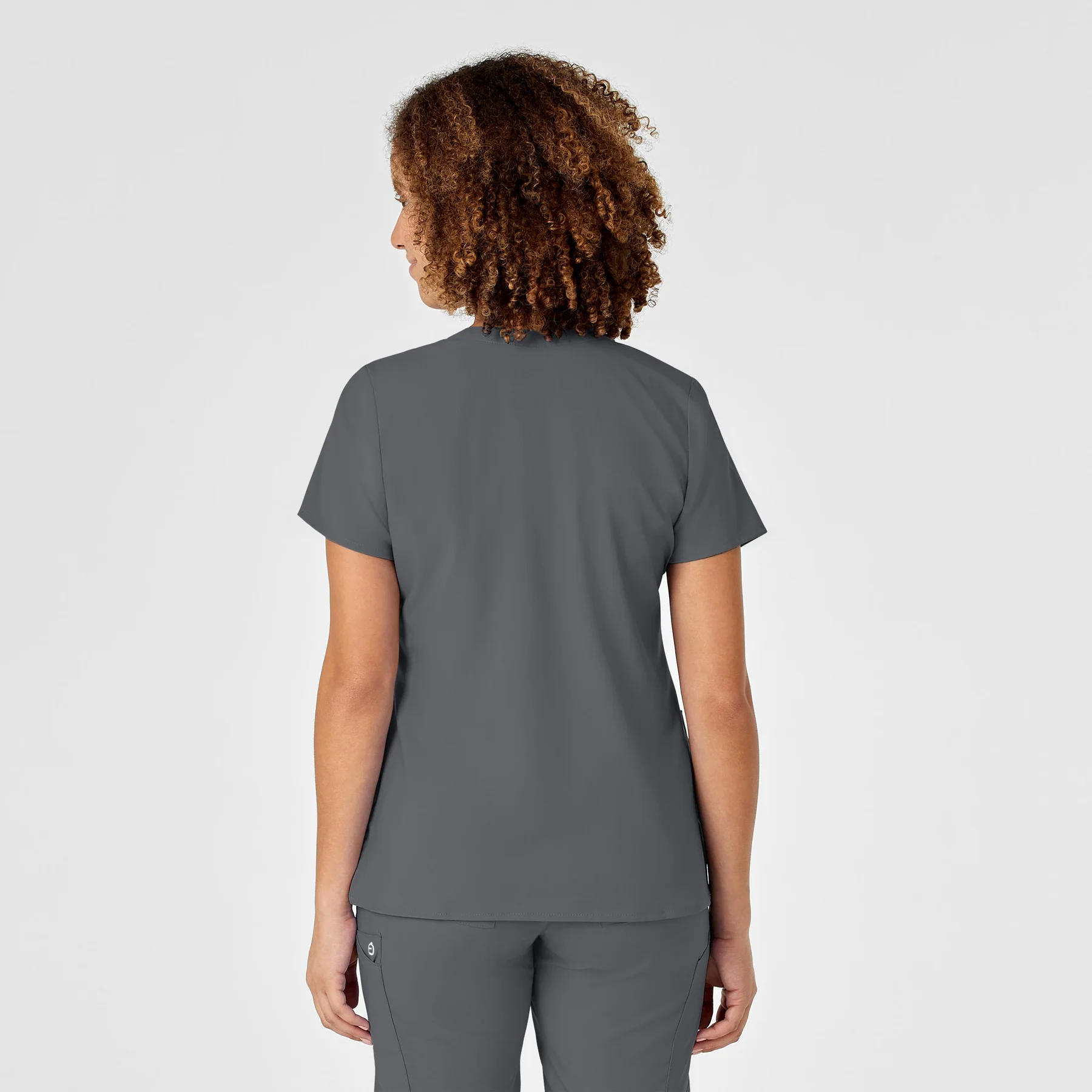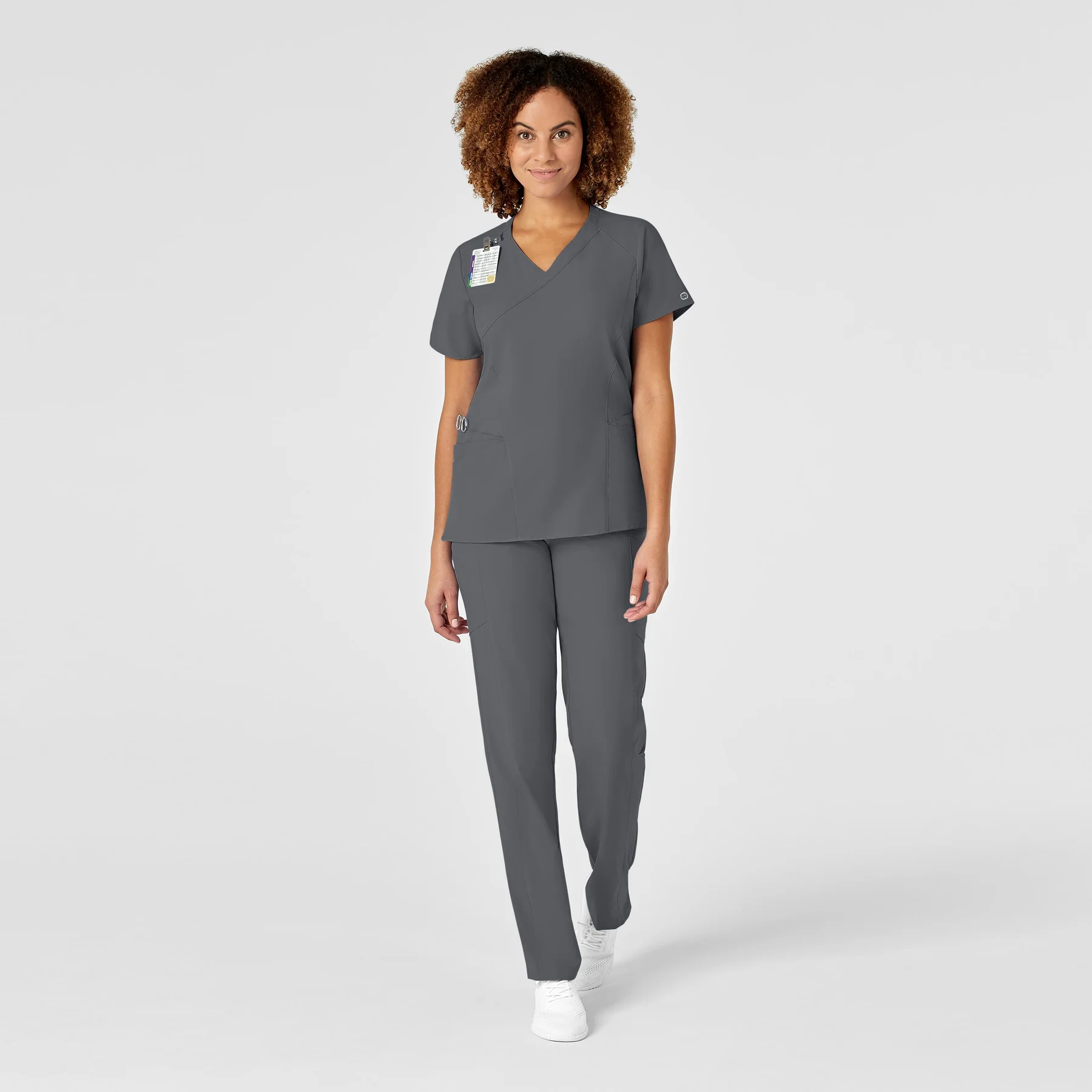 Bluza medicala moderna cu croiala semi-fit si design suprapus (mock wrap), ideala pentru profesionistele care doresc stil si functionalitate in timpul orelor lungi de lucru.