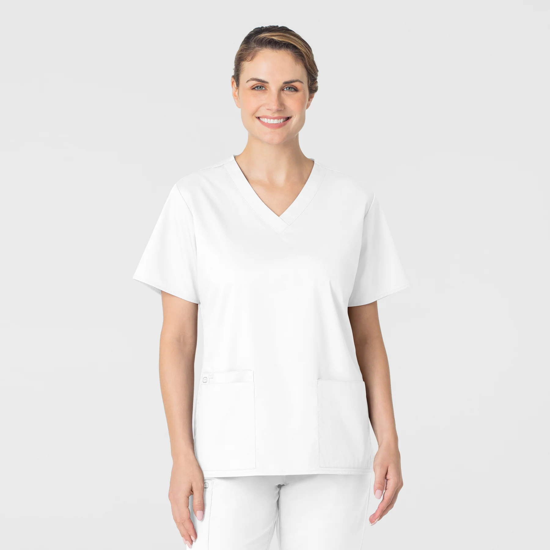 Bluza medicala WonderWORK pentru femei este conceputa pentru a rezista spalarilor frecvente si solicitarilor din timpul turelor aglomerate, oferind un aspect profesionist si confort sporit in miscare.