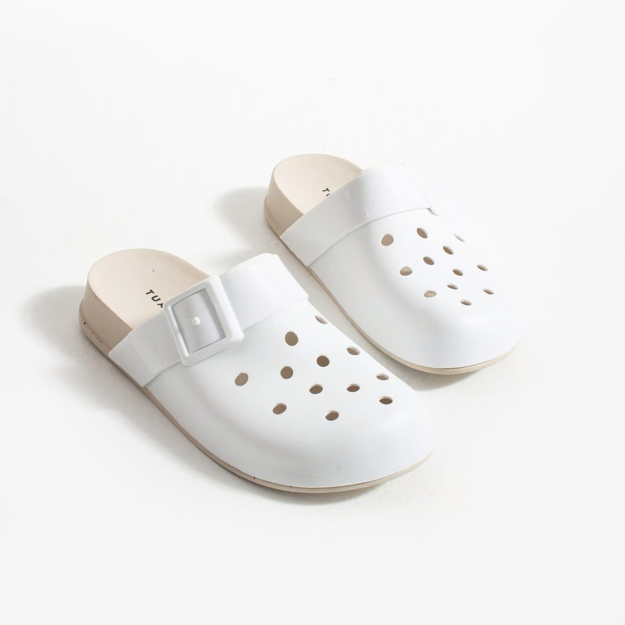 Saboti medicali, dama, Clio White din cauciuc, model perforat alb