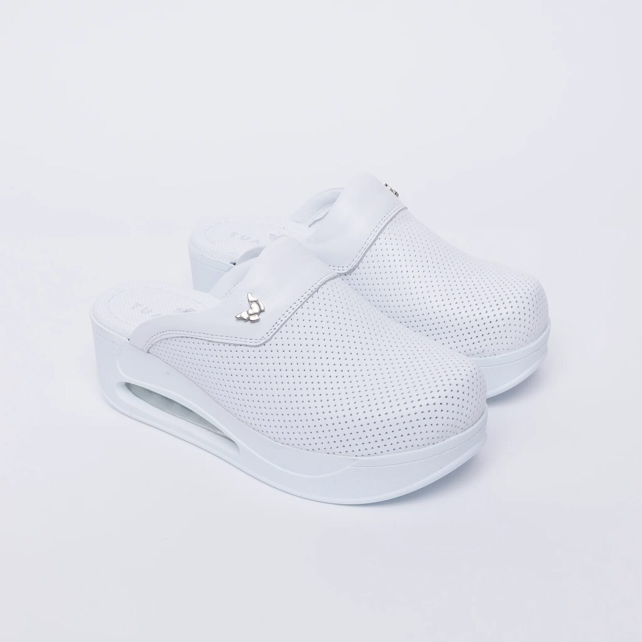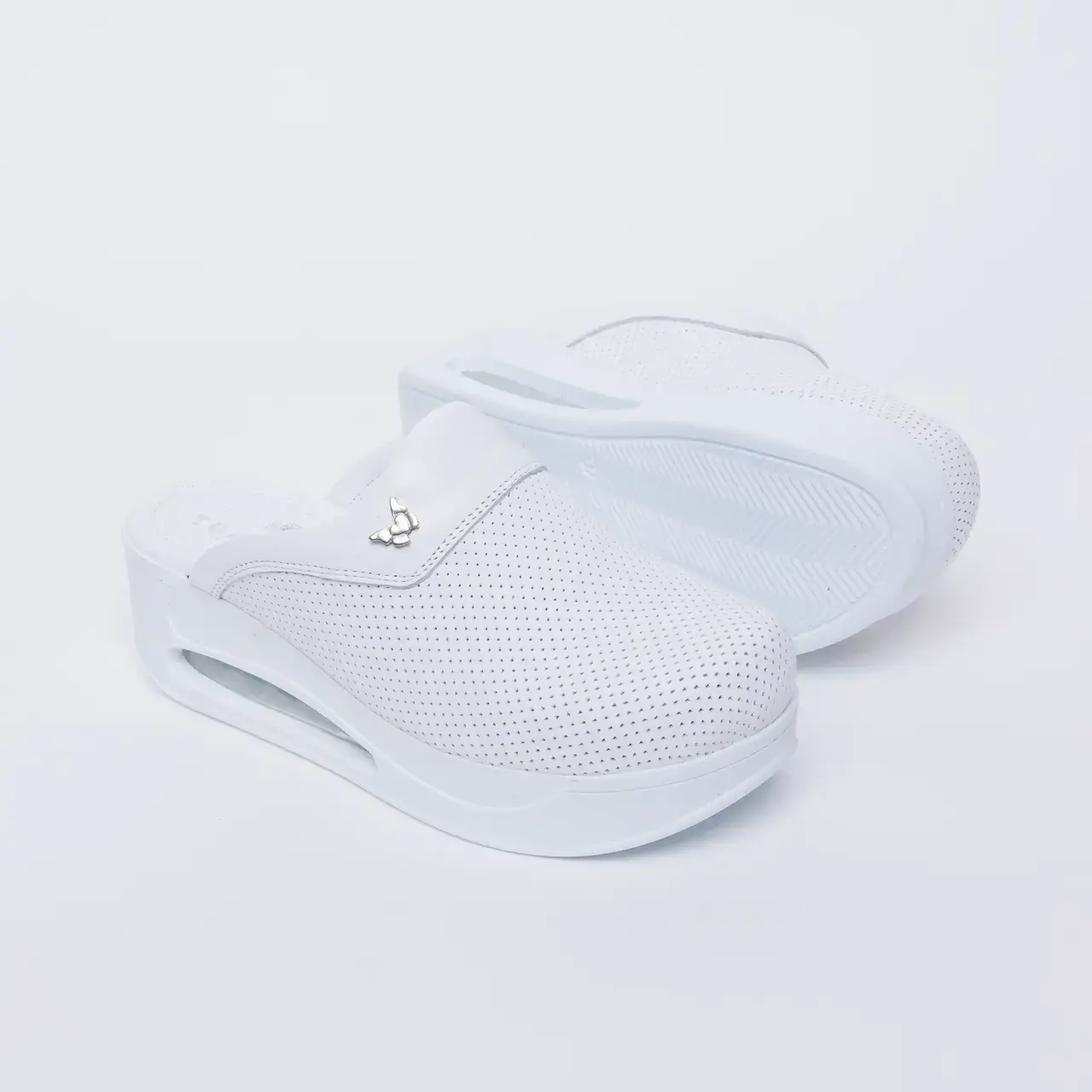 Modelul 800026 de la TUASOLEA este creat special pentru femeile din domeniul medical care cauta incaltaminte comoda, sigura si rezistenta. Designul modern pe platforma, combinat cu brantul anatomic si pielea naturala de calitate, transforma acesti papuci intr-o alegere ideala pentru zile lungi si active.