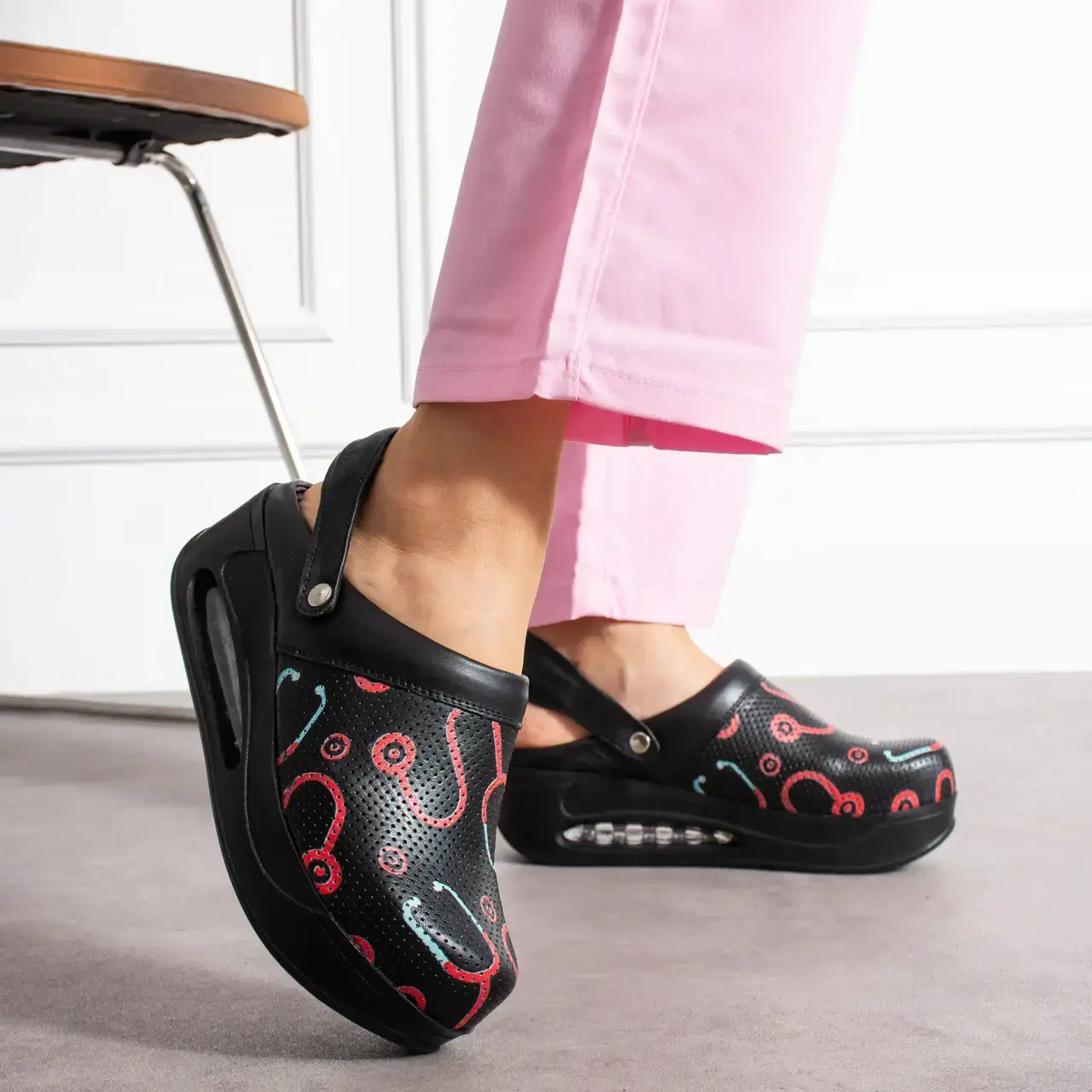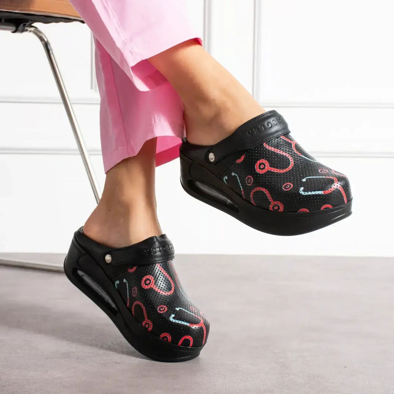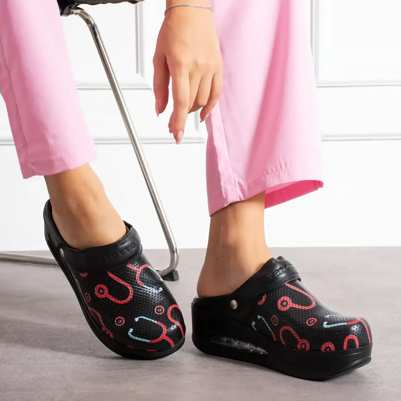 Sabotii medicali Nocturnia combina confortul ortopedic cu un design practic si rezistent. Realizati din piele naturala, cu platforma ergonomica si camera de aer integrata, acesti saboti sunt conceputi special pentru personalul medical si cei care petrec perioade lungi in picioare.